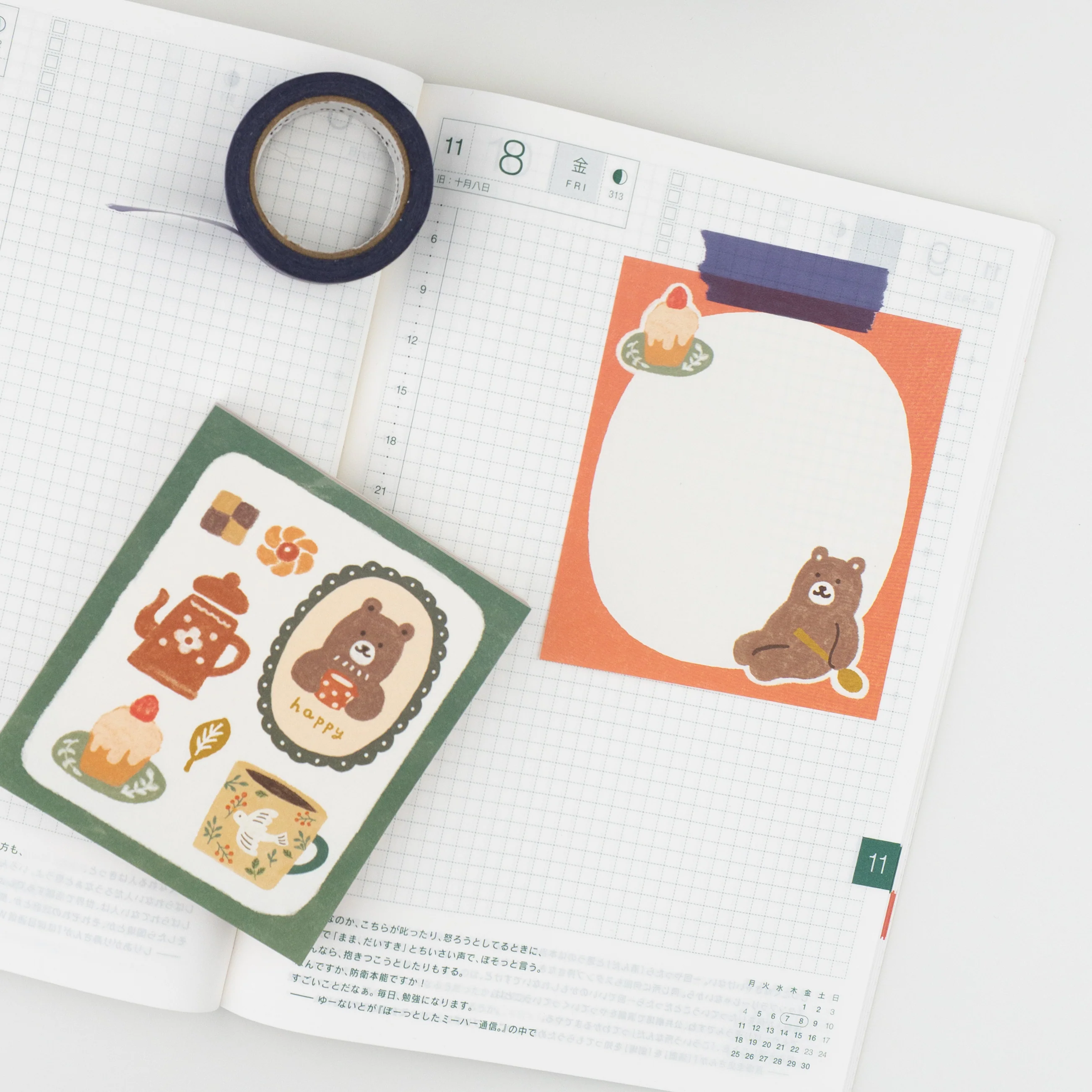 Furukawashiko Sweet Animal Workshop Memo Pad - Brown Bear Tea Time